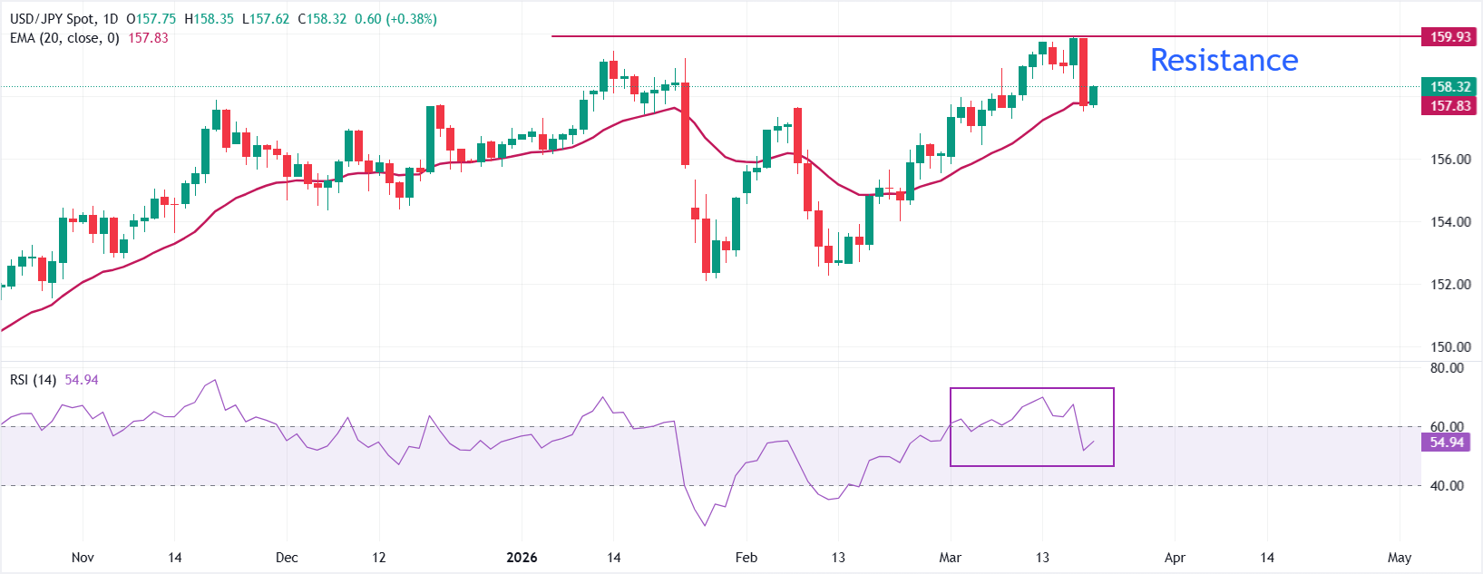 美元/日元在周五亚洲交易时段上涨0.4%,接近158.33。该货币对在周四大幅抛售后回升,尽管日本央行(BoJ)维持其货币政策前景的鹰派立场,日元(JPY)表现不佳。 标题:美元/日元价格预测:20日EMA在157.50附近充当关键支撑区