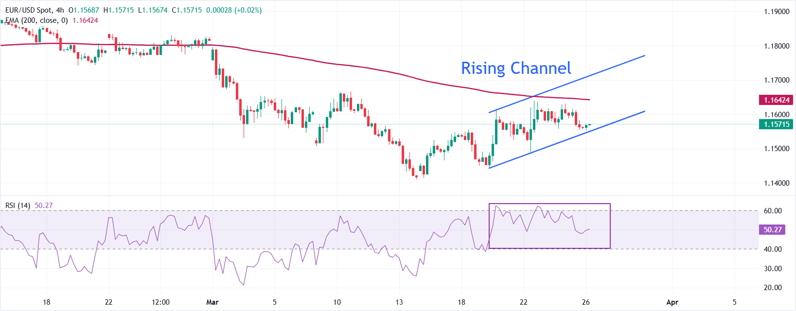 周四亚市晚盘,欧元/美元小幅上扬,交投于1.1570附近。 标题:欧元/美元价格预测:200周期EMA将在中东冲突中充当关键阻力