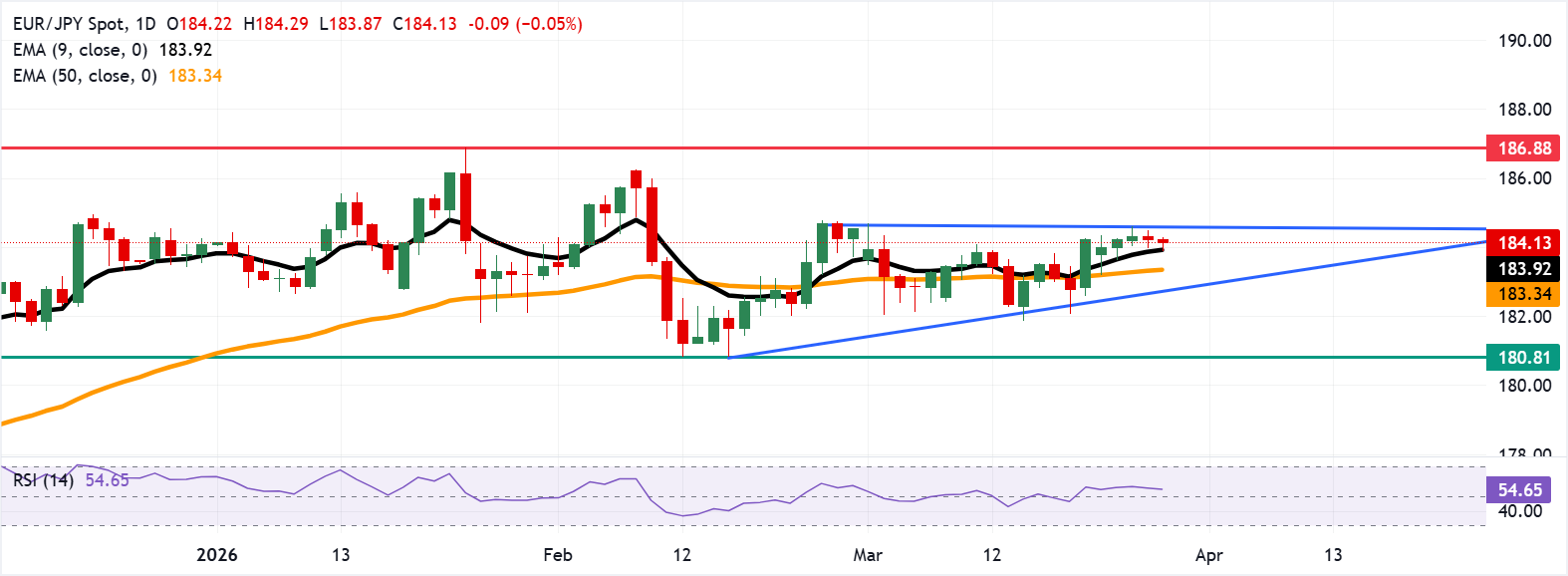 EUR/JPY连续第二个交易日下跌,周五亚洲时段交易于184.10附近 标题:欧元/日元价格预测:随着买盘压力上升,维持在184.00以上