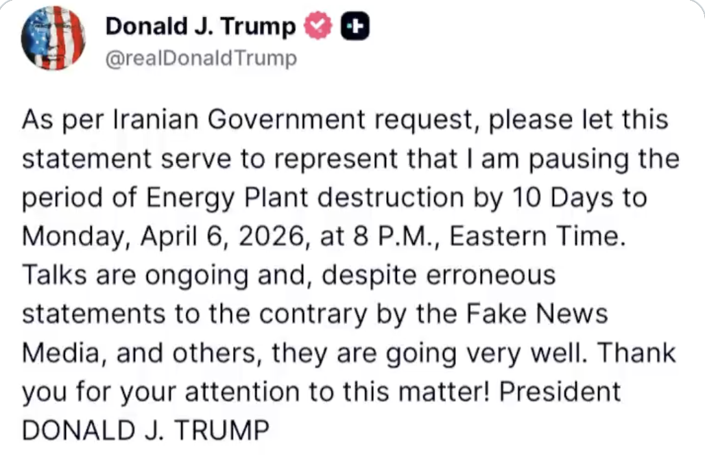 美国总统唐纳德·特朗普周四宣布,将伊朗能源设施的摧毁推迟十天,至4月6日东部时间晚上08:00。特朗普强调,华盛顿与德黑兰之间的谈判“进展非常顺利”,他是在伊朗政府的请求下决定暂停行动的。 标题:美国总统特朗普将对伊朗能源设施的打击推迟至4月6日
