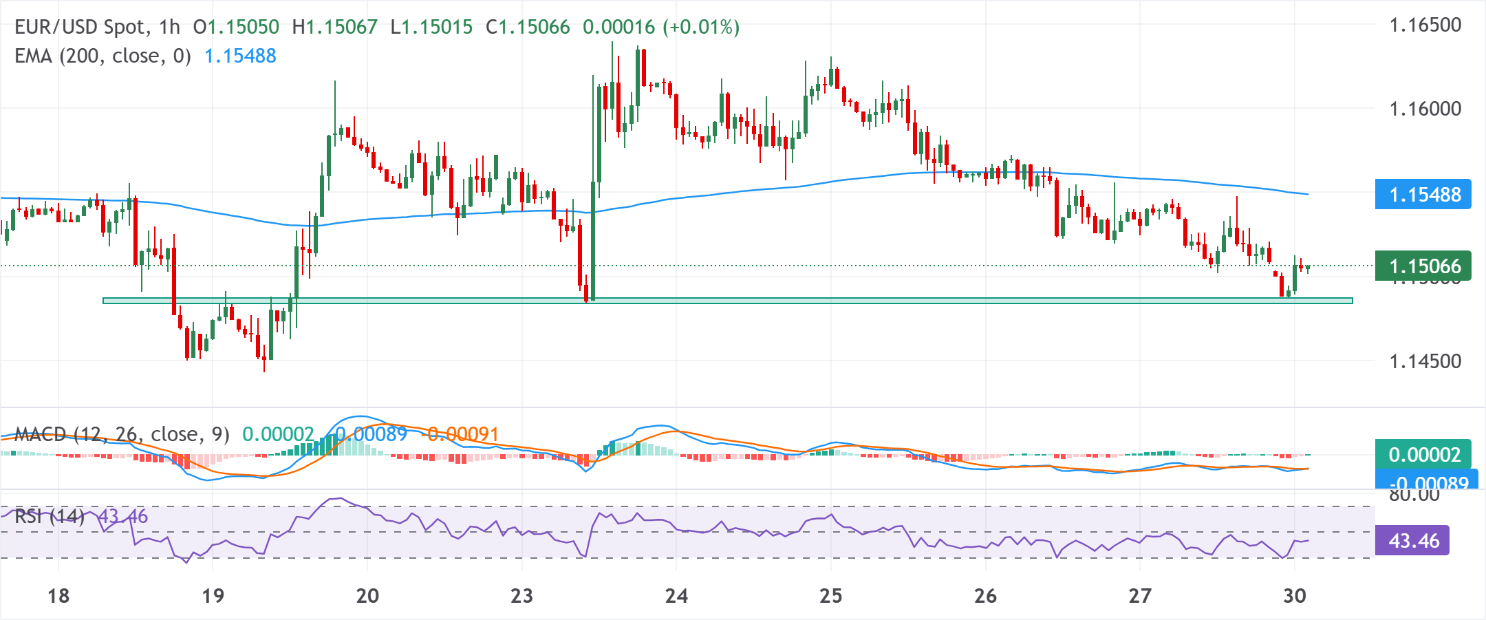 欧元/美元在本周一早些时候重新测试一周低点后回升数点,并在亚洲时段稳定于1.1500心理关口附近。然而,上行空间似乎有限,因为不断加剧的地缘政治紧张局势可能继续利好避险美元(USD),并对现货价格构成阻力。 标题:欧元/美元价格预测:在一周低点上方盘整;在1.1500附近似乎脆弱