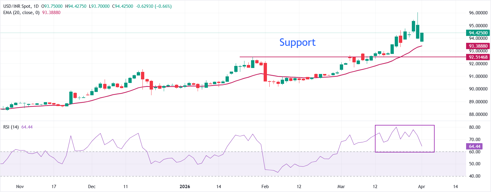 印度卢比(INR)未能维持开盘强势,周四兑美元(USD)走低。 标题:美元/印度卢比回升,因中东战争持续风险重新浮现