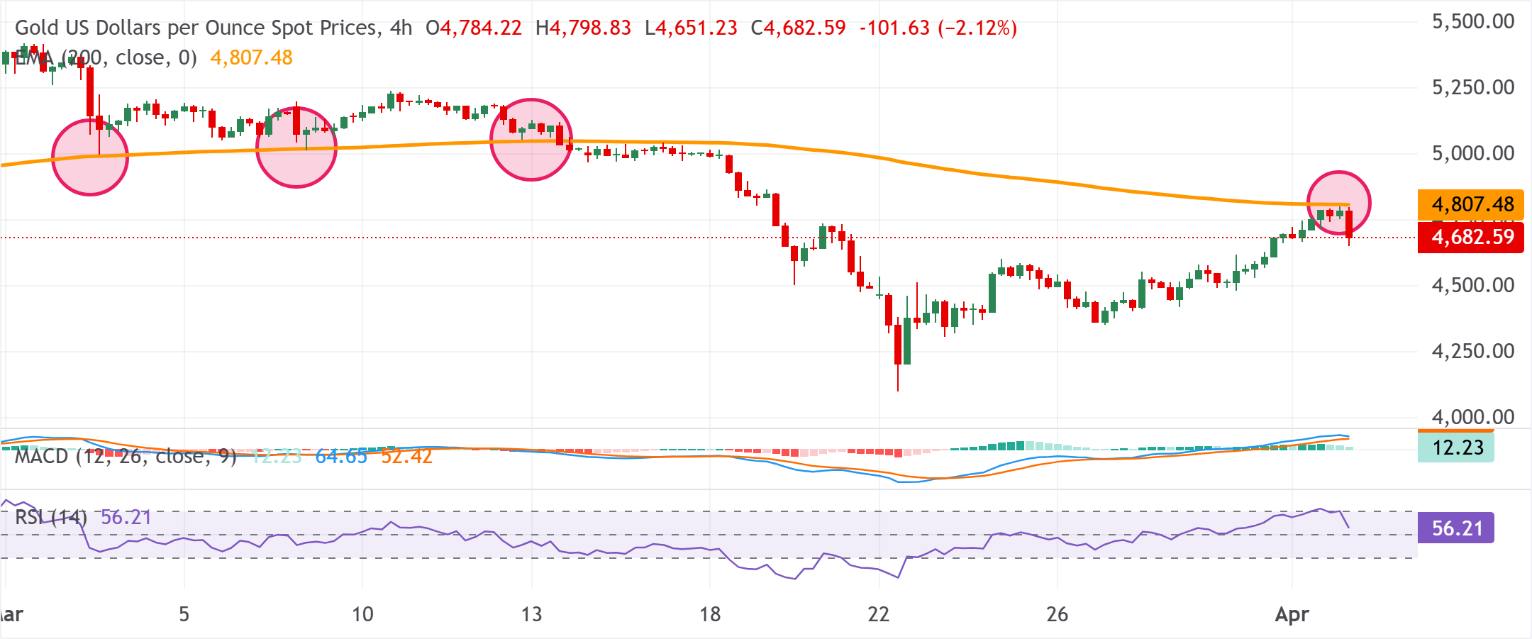 黄金(黄金/美元)在周四亚洲时段触及约4800美元的两周新高后,吸引了大量抛售,且在美元(USD)需求强劲回升的情况下显得脆弱。 标题:金价承压,日内大幅下跌,中东紧张局势支撑美元