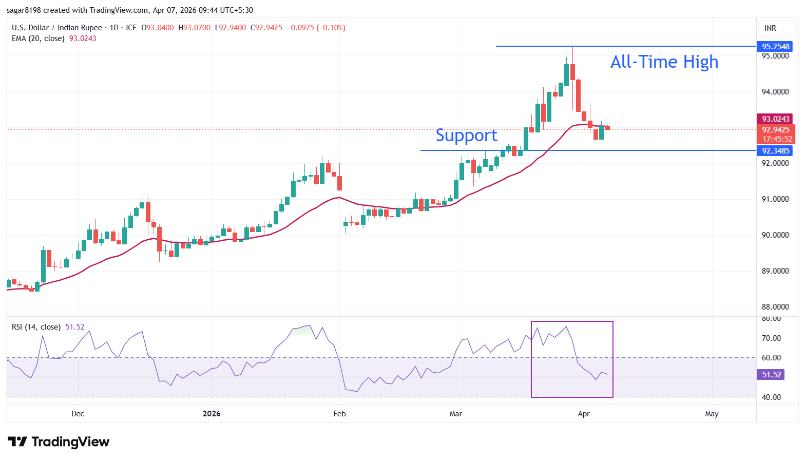 印度卢比(INR)在周二开盘交易中对美元(USD)小幅上涨 标题:美元/印度卢比开盘小幅走低,特朗普伊朗最后期限临近