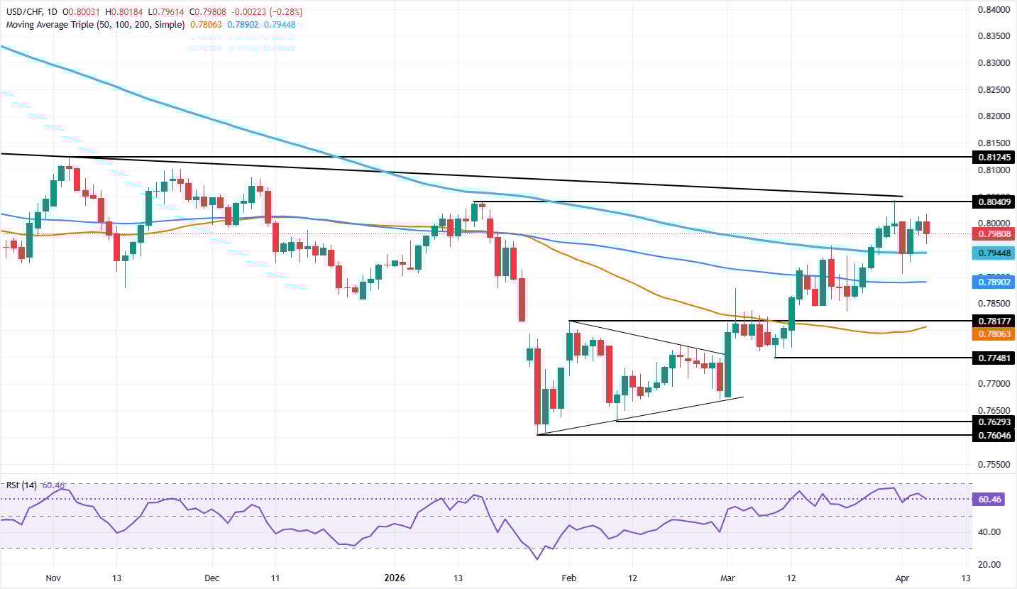 美元/瑞郎周一未能突破0.8000关键阻力位,回落至0.7900关口,双顶图表形态隐现。撰写时,该货币对报0.7979,下跌0.18%。 标题:美元/瑞郎价格预测:在0.8000受阻,双顶形态隐现