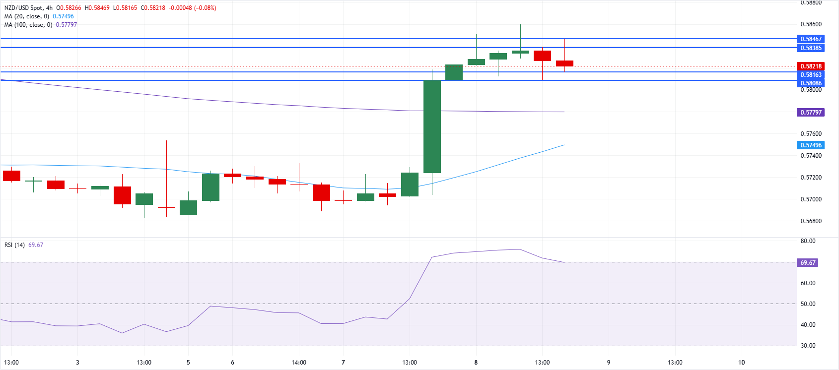 纽元/美元货币对周四在0.5830区域附近谨慎交易,随着地缘政治消息的变化,纽元(NZD)重新获得一定动能。 标题:随着地缘政治噪音加剧,美元需求回升,纽元/美元维持脆弱支撑