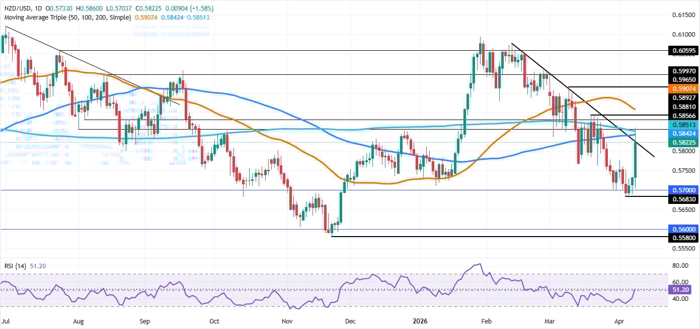 纽元/美元货币对周三大幅反弹,受两大因素推动:中东冲突的缓和以及新西兰储备银行(RBNZ)行长安娜·布雷曼(Anna Breman)在货币政策会议后的鹰派言论。 标题:纽元/美元价格预测:涨破0.5800,关注200日均线