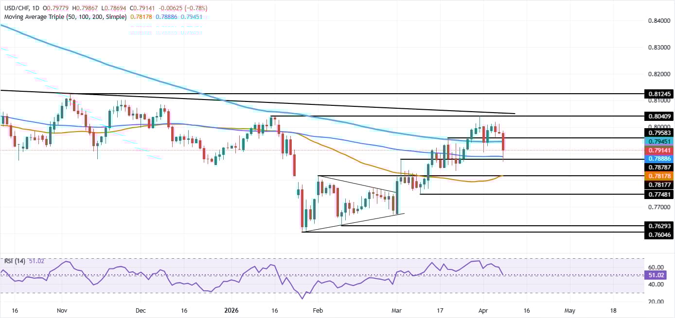 美元/瑞郎货币对周三回落约0.85%,未能突破周二的日高0.8011,且跌破200日简单移动均线(SMA)0.7940,因市场情绪因中东冲突两周停火而得到提振。 标题:美元/瑞郎价格预测:美元跌破200日均线,空头势头增强