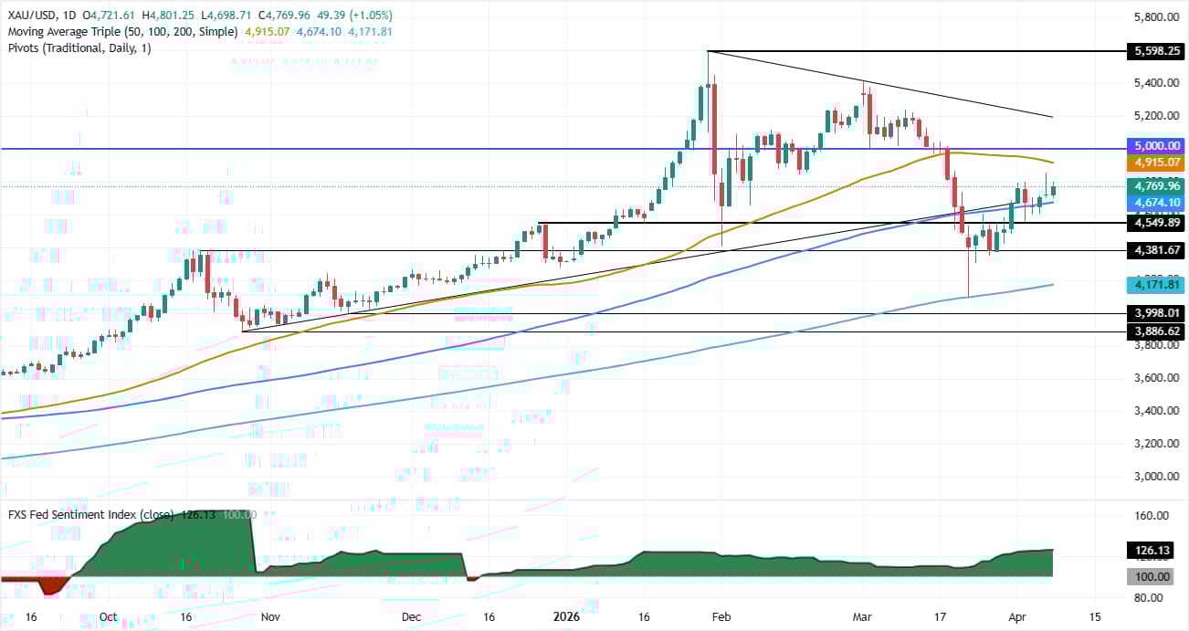 在以色列总理本杰明·内塔尼亚胡表示愿意与黎巴嫩进行谈判后,黄金价格(黄金/美元)周四恢复上涨。加之美元普遍走弱,支撑了黄金价格,推动其上涨挑战4800美元关口。 标题:黄金接近4800美元,因美元走软和收益率提振需求