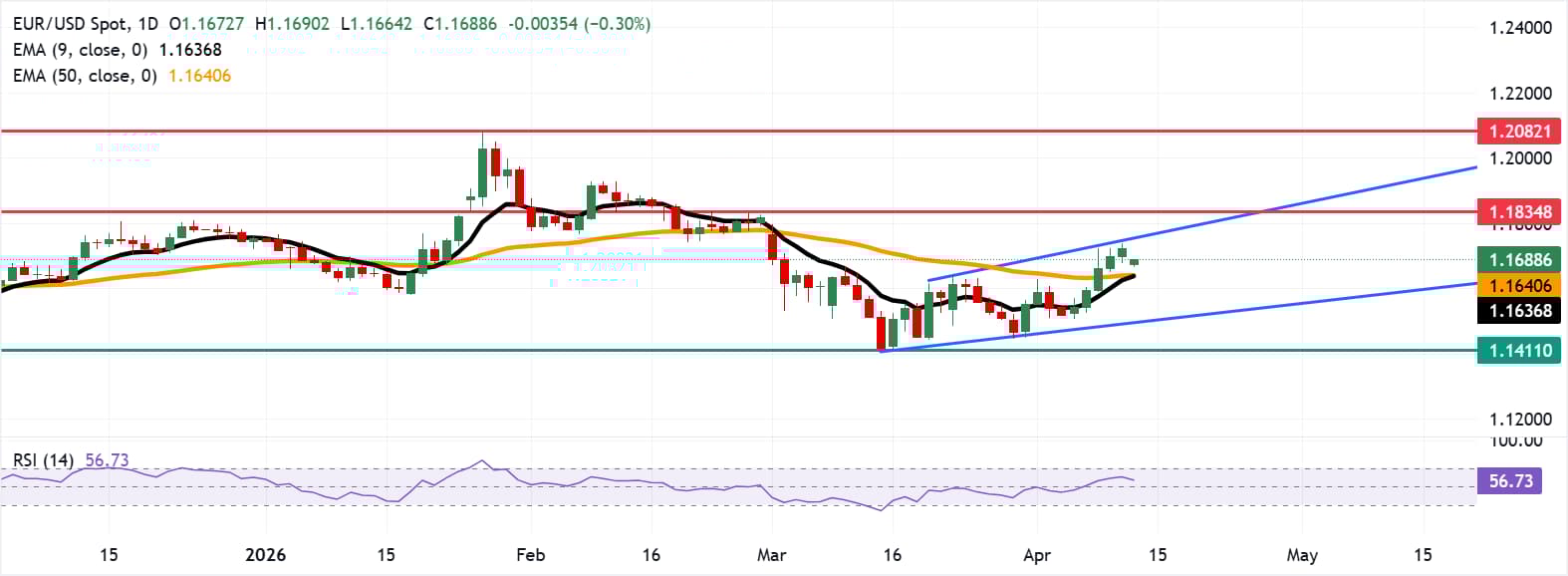 欧元/美元在跳空低开后小幅走高,周一亚洲时段交易于1.1690附近。日线图技术分析显示看涨倾向,因为该货币对正处于上升通道内上升。 标题:欧元/美元价格预测:反弹至接近1.1700,因看涨偏向占优