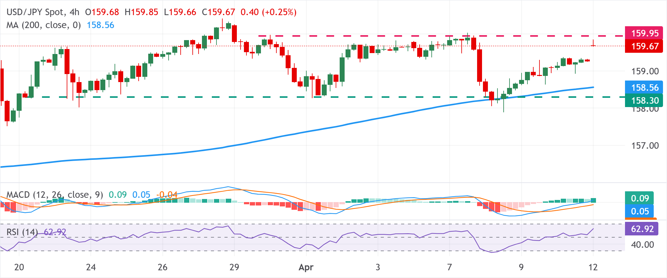 美元/日元延续过去两天的涨势,新周开盘时出现看涨跳空,亚洲时段升至159.85附近。然而,干预担忧限制了现货价格的进一步上涨。 标题:美元/日元价格预测:看涨技术形态下,期待突破至160.00以上