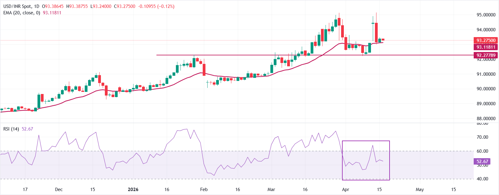 印度卢比(INR)周四对美元(USD)小幅走高。由于美国(US)与伊朗之间永久停火的希望增强,美元(USD)面临强烈抛售压力,美元/印度卢比(USD/INR)下跌至接近93.28。 标题:美元/印度卢比小幅下跌,因伊朗停火希望打压美元