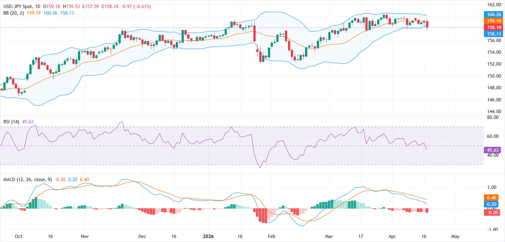 美元/日元周五小幅下跌,因日元兑走软的美元走强,同时油价回落为日元提供额外支撑,鉴于日本对进口能源的高度依赖。撰写时,该货币对交易于158.18附近,日内下跌0.61% 标题:美元/日元下滑,伊朗重新开放霍尔木兹,WTI暴跌,美元走弱