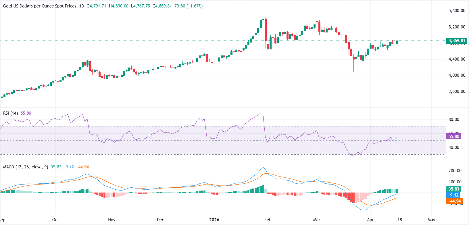 周五,黄金(黄金/美元)受益于美伊达成协议的希望以及霍尔木兹海峡重新开放,推动油价下跌,缓解通胀压力,强化了市场对美联储(FED)降息预期的信心。 标题:金价上涨,因伊朗重新开放霍尔木兹海峡、油价暴跌以及美联储降息押注增强