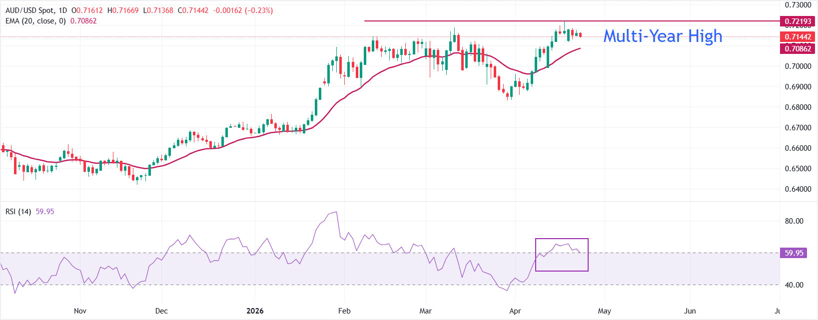 澳元/美元在周四亚洲交易时段放弃早盘涨幅,下跌0.24%,报约0.7145。 标题:澳元/美元价格预测:随着市场情绪转向风险规避,走势逆转