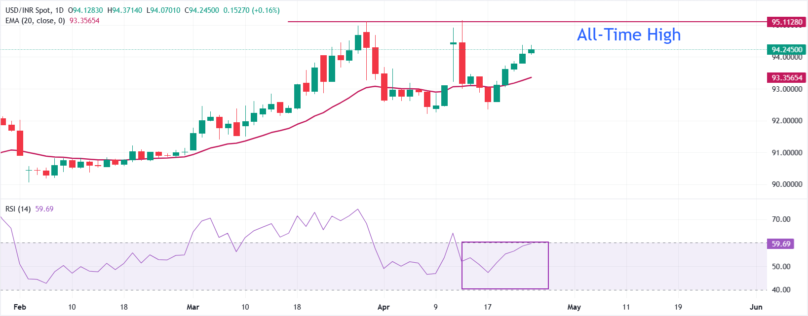 印度卢比(INR)周五对美元(USD)开盘走强,结束连续第五个交易日的跌势。 标题:美元/印度卢比在对霍尔木兹海峡长期关闭的担忧中延续涨势