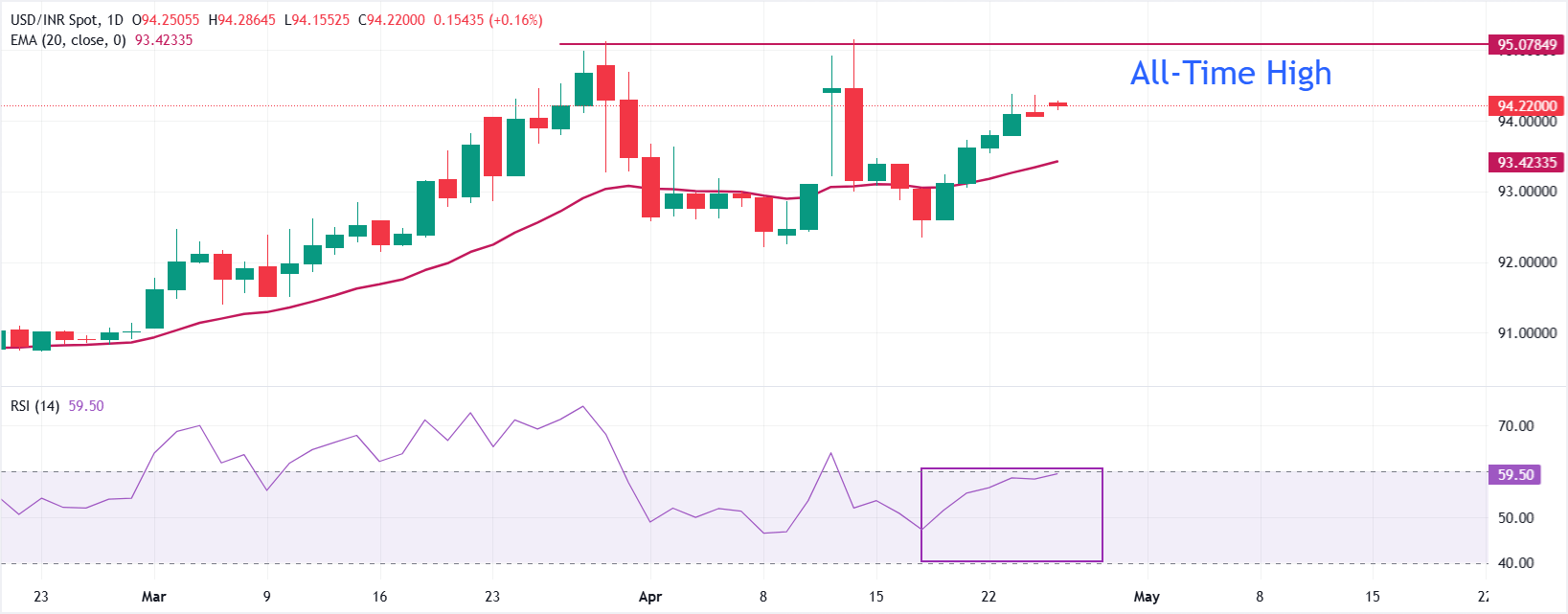 印度卢比(INR)周一开盘时对美元(USD)维持周线跌势 标题:美元/印度卢比维持周涨幅,卢比面临多重阻力
