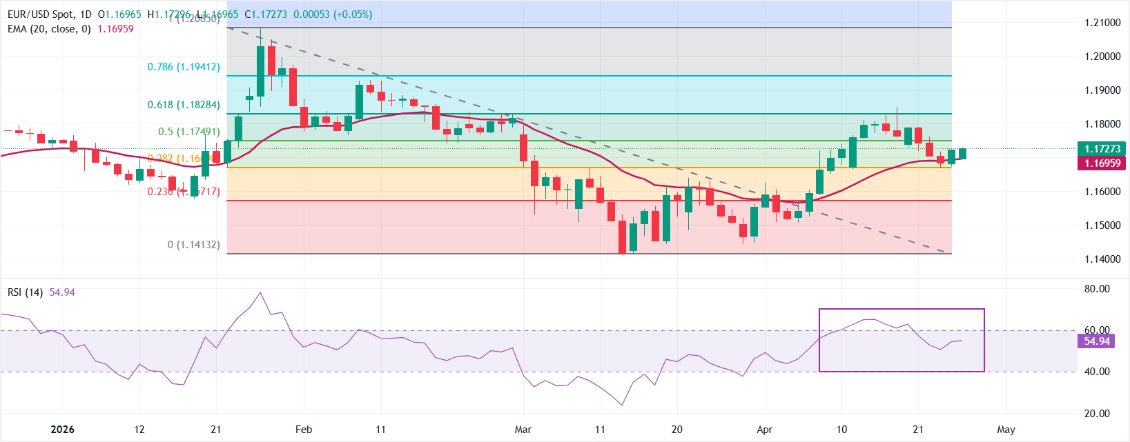 周一亚洲交易时段,欧元/美元回吐早盘跌幅,转为上涨,交投于约1.1730。随着美元(USD)转跌,这一主要货币对上涨。 标题:欧元/美元价格预测:反弹至接近1.1730,20日指数移动平均线保持支撑